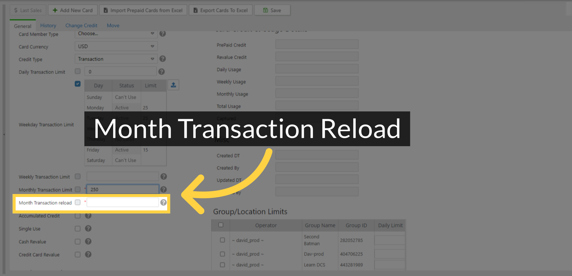 Monthly Limit - Sets a monthly limit to the number of transactions or the amount that can be used with this card.